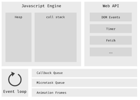 setTimeout은 세팅한 시간이 되면 브라우저가 큐로 던져주고, 이벤트루프가 콜스택이 비어있는걸 확인하게 되면 settimeout를 스택으로 던져주고, 내부의 콜백함수가 실행되게 된다.