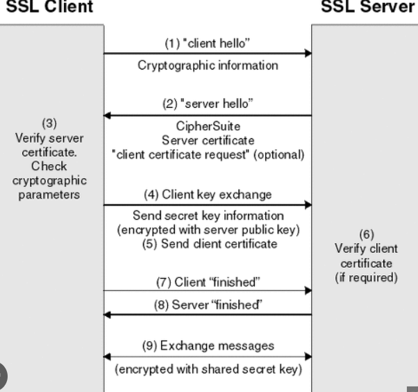 - 클라이언트는 서버에 "안녕하세요"라는 메시지(공식적으로 "Client Hello"라고 합니다)를 보내고, 서버도 "안녕하세요"("Server Hello")라는 메시지로 응답합니다. 이 때 양측은 랜덤 데이터와 자신이 사용 가능한 암호화 방식을 서로에게 알립니다.