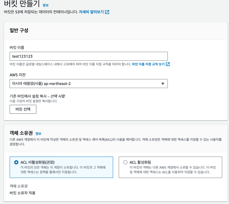 참고로 만들어진 버킷 속성에 있는 아래 옵션도, 우리는 cloudFront를 이용하기 때문에 사용하지 않는다.