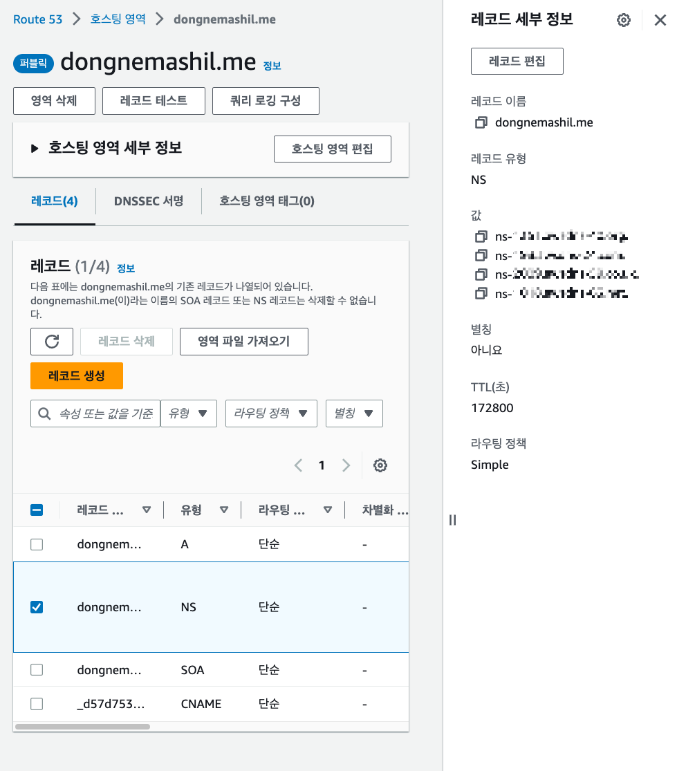 Route53으로 가서 아까 생성한 호스팅영역으로 가본다.