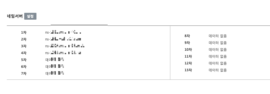 NS 레코드에 체크를 하면 오른쪽에 값이 나온다. 이제 가비아로 간다.
