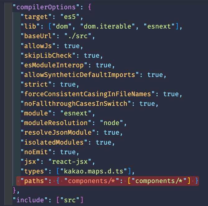 "paths": { "components/*": ["components/*"] }