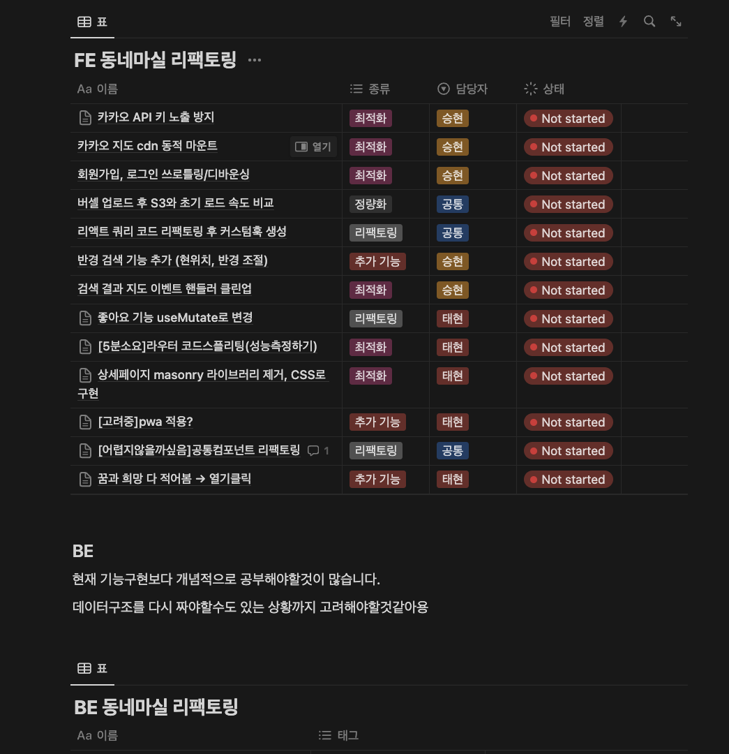 서버와 함께 작업이 필요하거나, 있으면 좋지만 우선순위가 밀리는 것