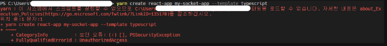 윈도우에서 yarn 을 사용할때는 RemoteSigned를 허용해줘야 한다고 한다.