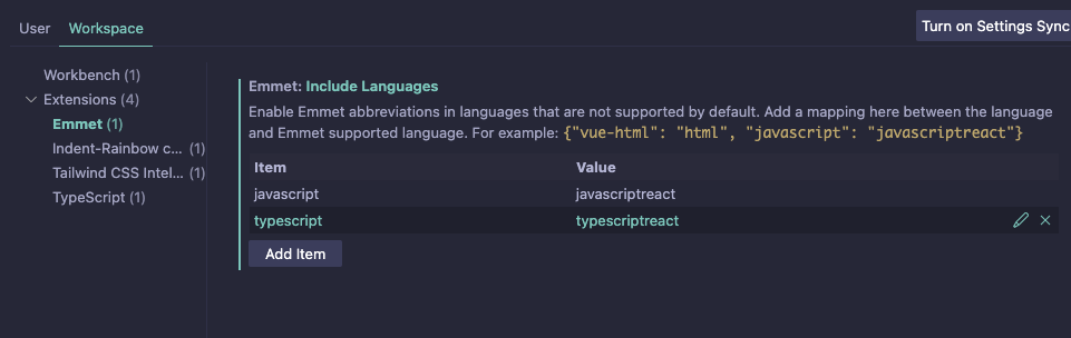 목차 맥 : cmd + , 윈도우 : ctrl + , 위 검색에서 include languages 검색하면 바로 나옴. 위 화면이 나오면 위와같이 javascript javascriptreact typescript typescriptreact 입력 공유하기 게시글 관리 kth 저작자표시 비영리 변경금지 (새창열림) 목차 목차 닫기