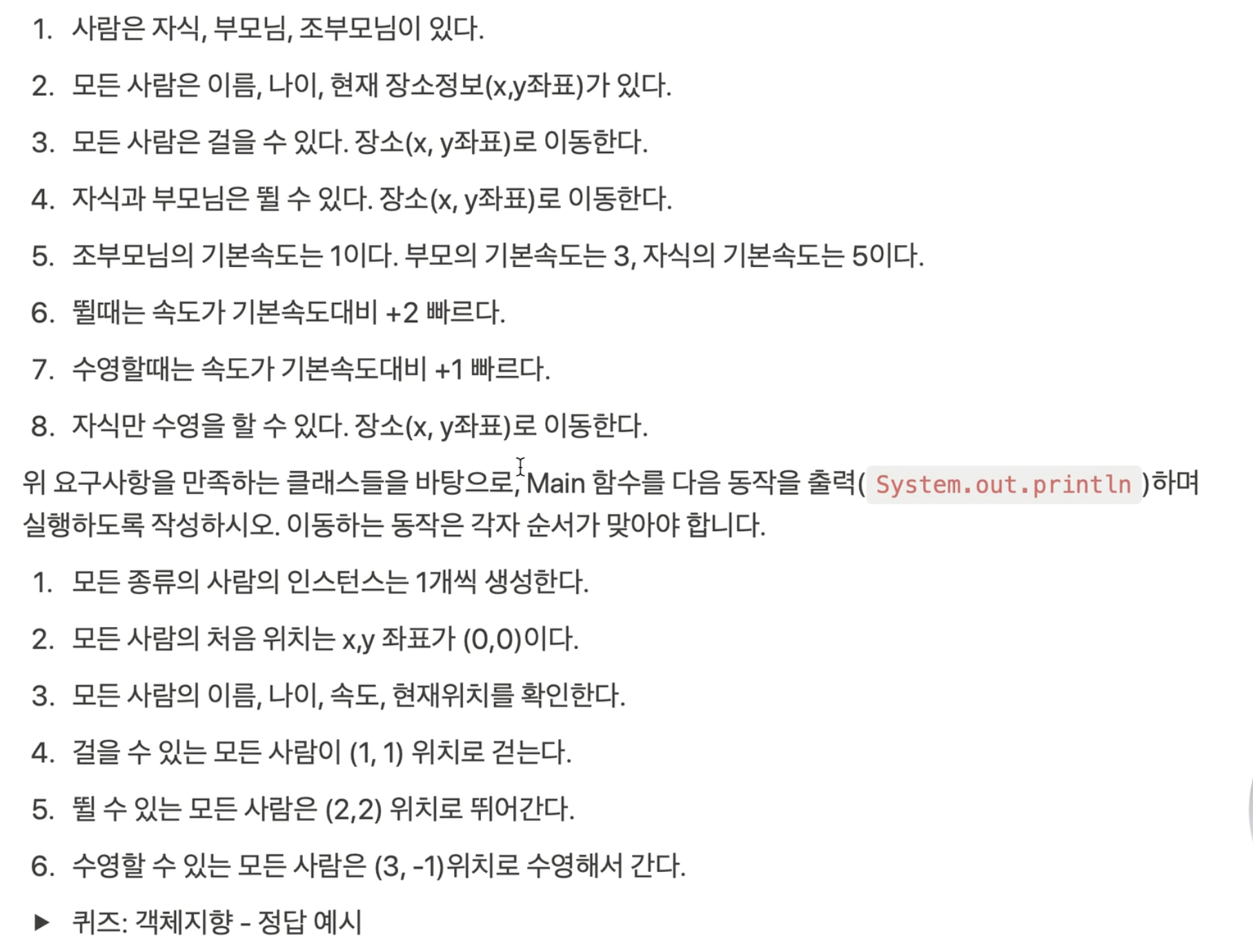 (이름 : 자식, 나이 : 15, 위치 : 0, 0, 이동시간 : 0.0)