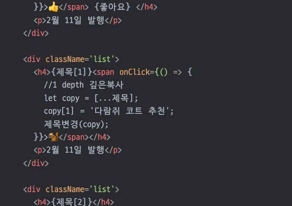 <h4>{제목[0]} <span onClick={() => {